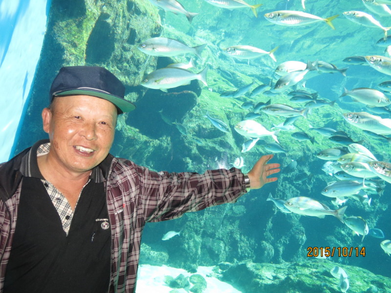 大きな水槽を前に利用者様、声揃えて「うわぁ~すごかねぇ~!!」の声ばかり・・・。海や魚に慣れ親しんだ小佐々の皆様も大きなエイや海カメに驚きの表情でした!!