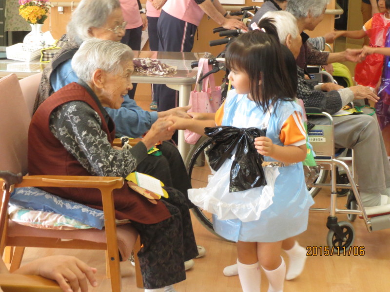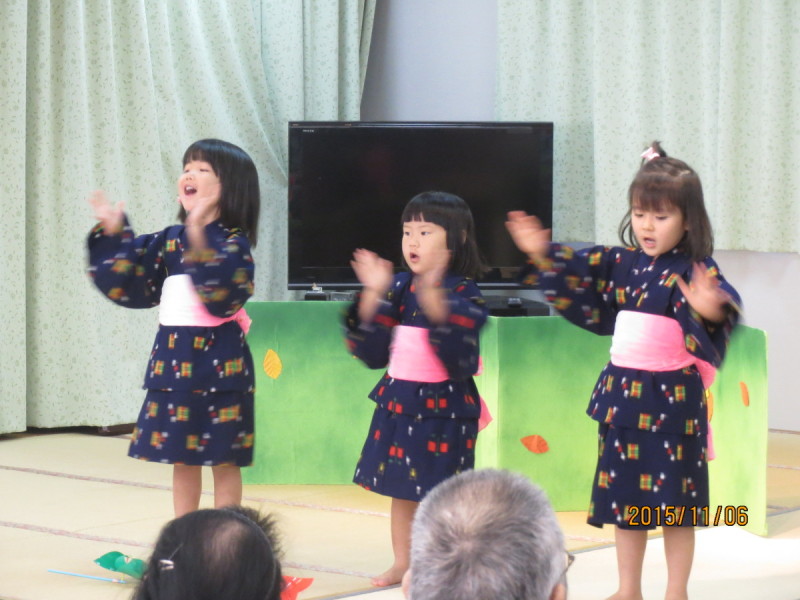 11月6日(金)に小佐々幼稚園の園児15名(4歳児・5歳児)との交流会を行いました。お遊戯会が終わったあとで踊りをメインとした内容でした。