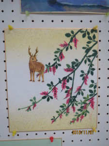 手作り教室作品ではありませんが、デイサービスでは個人でも作品作りに励んでいらっしゃる方も多数いらっしゃいます。次の作品は和紙を手でちぎり張り合わせた作品です。見本などもなく全て写真や想像で作られています。