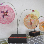 糸が乾燥したら、風船を針で割り、先ほどの小物を中に慎重に入れ込み、完成したのが・・・こちらになります。