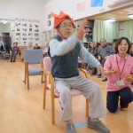 5月に入り、こさざデイサービスでは「子供の日レクリエーション」を4日(水)・5日(木)の2日間行いました。兜(おりがみ)をかぶり、的にめがけて紙ボールを投げて頂きました!的には鯉のぼりが泳いでいて、絵の間に穴が開いています。その穴に紙ボールを入れると得点になるといった簡単なゲームです。