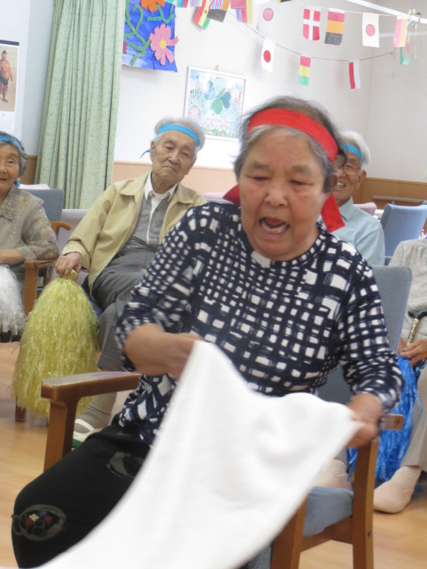 9月7日(水)8日(木)、こさざデイサービスでは運動会を開催しました。両日、フロア内は応援合戦はもちろん、頭にはハチマキを締め、競技でも熱い戦いで大変盛り上がりました!!