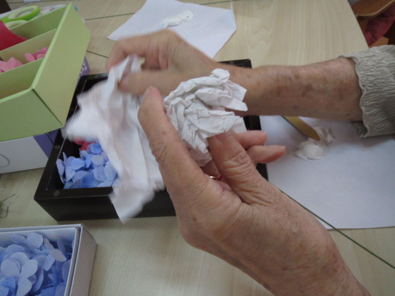今回のこさざ手作り教室は、今が旬の花「紫陽花」です。完成度は非常に高く、今までの中でも本物に近い完成度です。数人の方は本物と間違える程です!