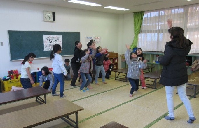 お手玉を投げて鬼をやっつけよう! 「エイッ!」