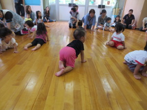 様子を見ていただいたり、赤ちゃん体操・リズム遊び・制作・運動遊びなど保育の中で年齢別に計画をたて遊びを 通して行っていることを一緒に見たり、親子で取り組んだりして頂きました。